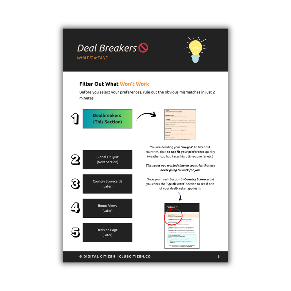 The Expat Country Decision Kit is a 240+ page framework (in digital form) that takes you from: